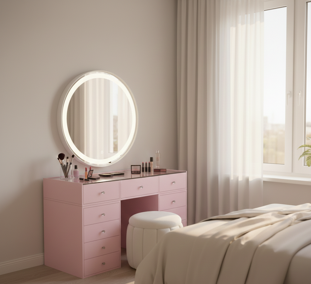 Avoir une coiffeuse, c'est s'offrir un moment pour soi, loin des distractions. Un miroir bien éclairé permet d'apprécier chaque détail de sa mise en beauté, tandis que les tiroirs et compartiments gardent tout à portée de main. Fini le stress de chercher son rouge à lèvres préféré ou ses boucles d'oreilles au dernier moment !